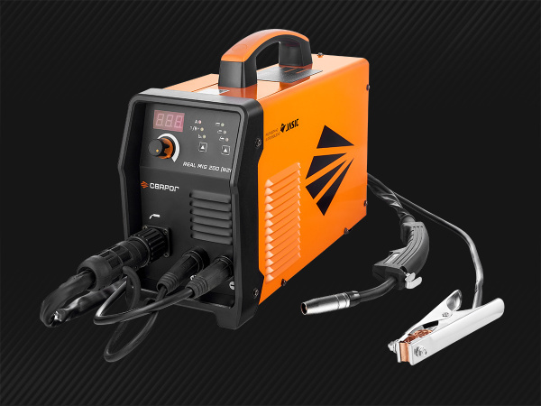 REAL MIG 200 (N2H3)— инверторный сварочный аппарат для полуавтоматической сварки в среде защитных газов (MIG/MAG), сварки порошковой проволокой (FCAW), ручной дуговой сварки покрытым электродом (ММА), а также аргонодуговой сварке TIG Lift